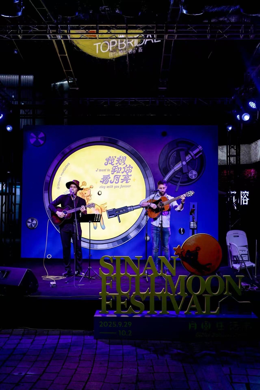 两大舞台演出点燃现场氛围。“一起出道”舞台上,打浦桥街道浦韵合唱队一曲《热血颂》引得掌声阵阵,队员们说:“第一次在街区市集演出,比室内音乐厅更热闹,我们排练了很久,就想把最好的歌声带给大家。”“月圆之书”舞台则伴着月光装置,20余位音乐人带来盛宴——汪紫芸弹唱原创歌曲,印度塔布拉鼓大师与手碟、吉他手合作二重奏,疗愈的旋律在夜色中流淌。
