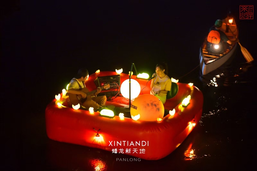 沿着石板路逛,处处是中秋主题灯饰,连空气里都飘着节日的浪漫。若走累了,“海月茶亭”的圆桌席正等着——按古礼奉上清茶与佳酿,茶器温润、酒香清雅,东方美席的仪式感瞬间拉满。傍晚时分,蟠龙湾的水上舞台传来悠扬乐声,“回声当代乐团”的跨界演出混搭着“青浦田山歌”的乡音,20多场特色演出轮番登场,听得人挪不开脚。一旁的手工作坊里,有人跟着师傅学掐丝珐琅,指尖慢慢勾勒出花纹;非遗酿造美食区前,绍兴黄酒的醇香、山西老醋的酸鲜勾着人驻足,光闻味儿就醉了。